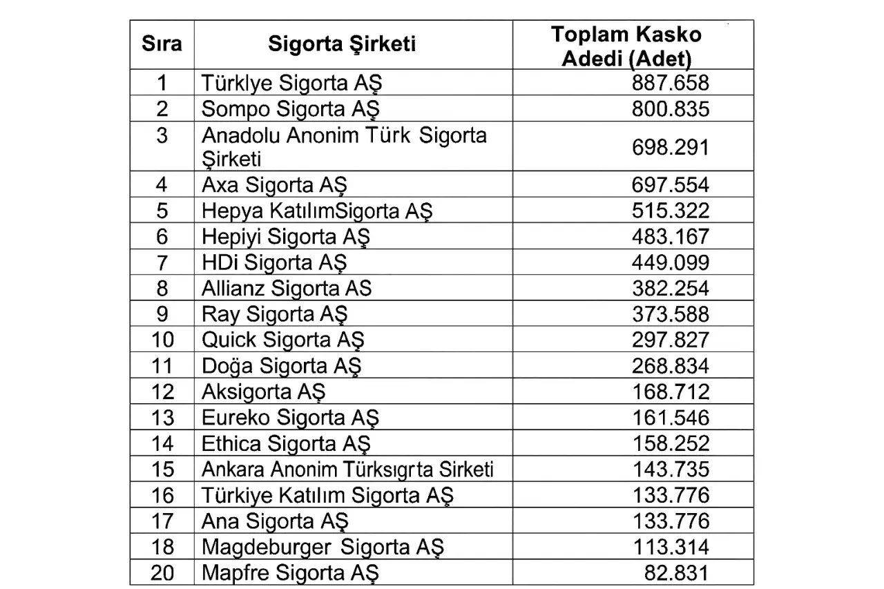 Şok Edici Kasko Poliçe Sayıları