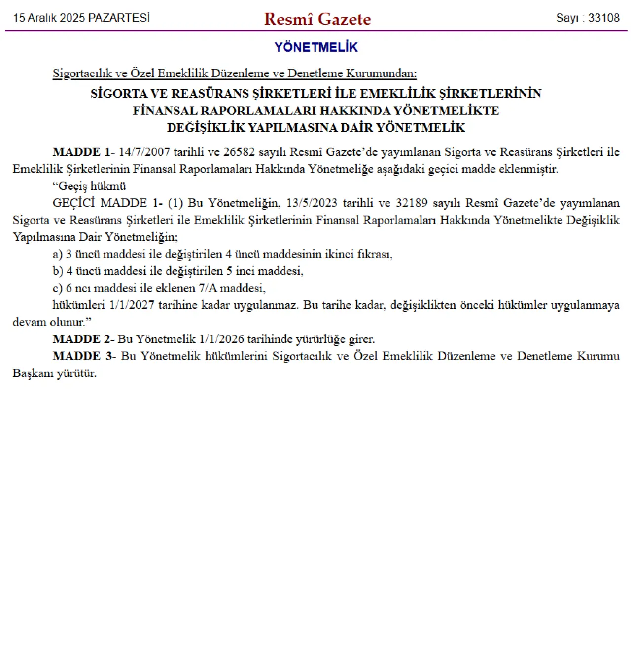 Sigorta sektörü, ekonominin önemli bir parçası olarak, çeşitli riskleri yönetmeyi ve finansal güvenliği sağlamayı hedeflemektedir. Türkiye’de sigorta sektöründe uygulanan finansal raporlama düzenlemeleri, bu hedeflerin gerçekleştirilmesine yönelik önemli bir adımdır. Söz konusu düzenlemeler, sektörün sürdürülebilirliğini ve şeffaflığını artırmak amacıyla hayata geçirilmektedir. Ancak, geçtiğimiz günlerde yapılan bir açıklama ile yeni düzenlemenin uygulanma tarihi 2027’ye kadar uzatıldığı duyuruldu. Bu durum, sektördeki şirketlerin düzenlemelere tam olarak uyum sağlama fırsatı bulmalarını sağlayacak ve aynı zamanda piyasanın genel dinamikleri üzerinde de bazı değişimlere yol açabilecek.
